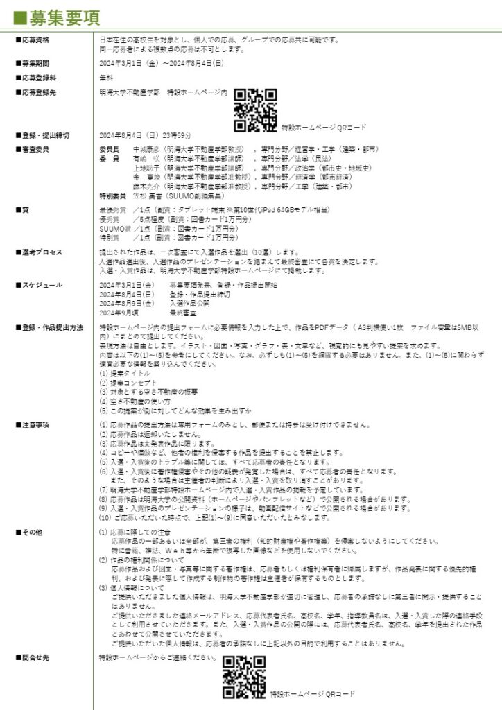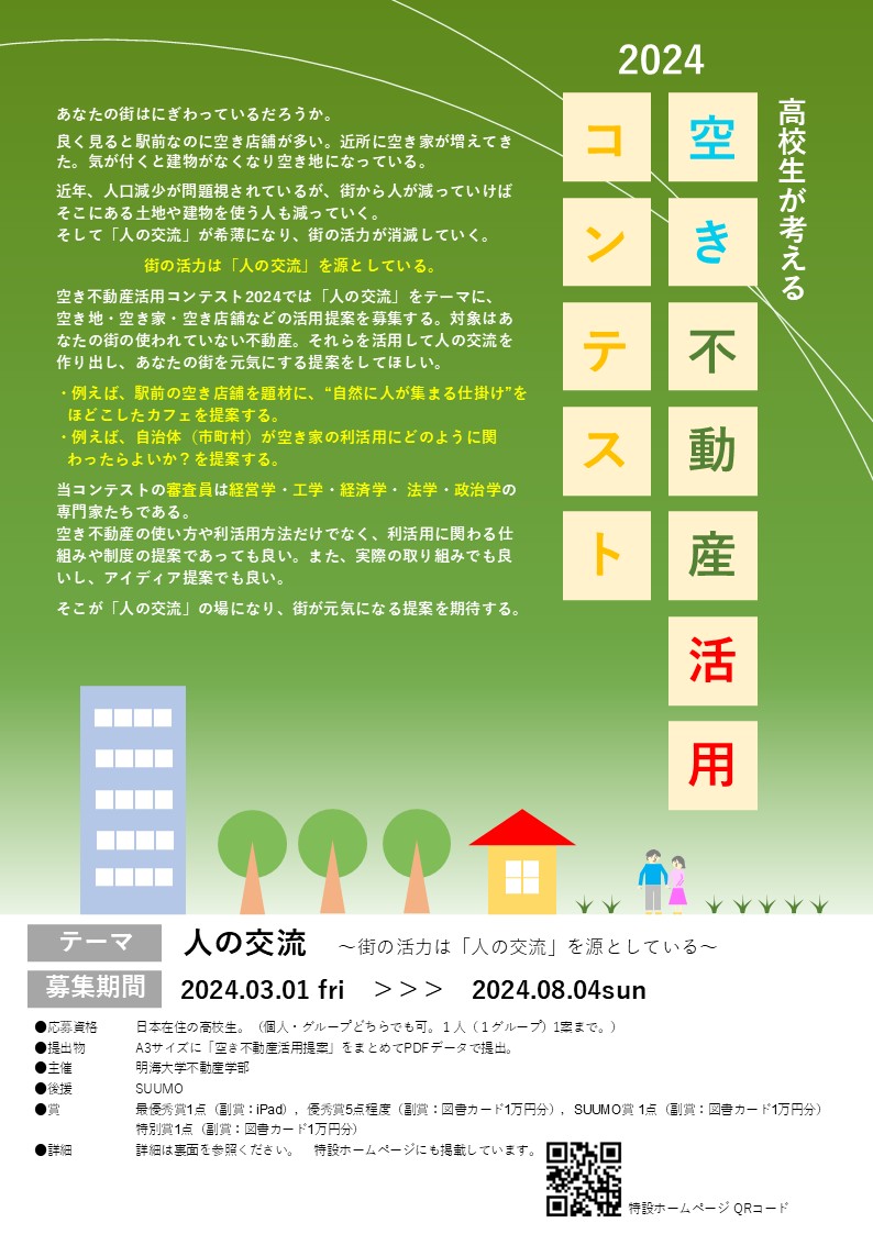 2024年9月8日(日)に明海大学浦安キャンパスで行われた「2024 高校生が考える 空き不動産活用コンテスト 最終審査会」の審査結果を公表します。