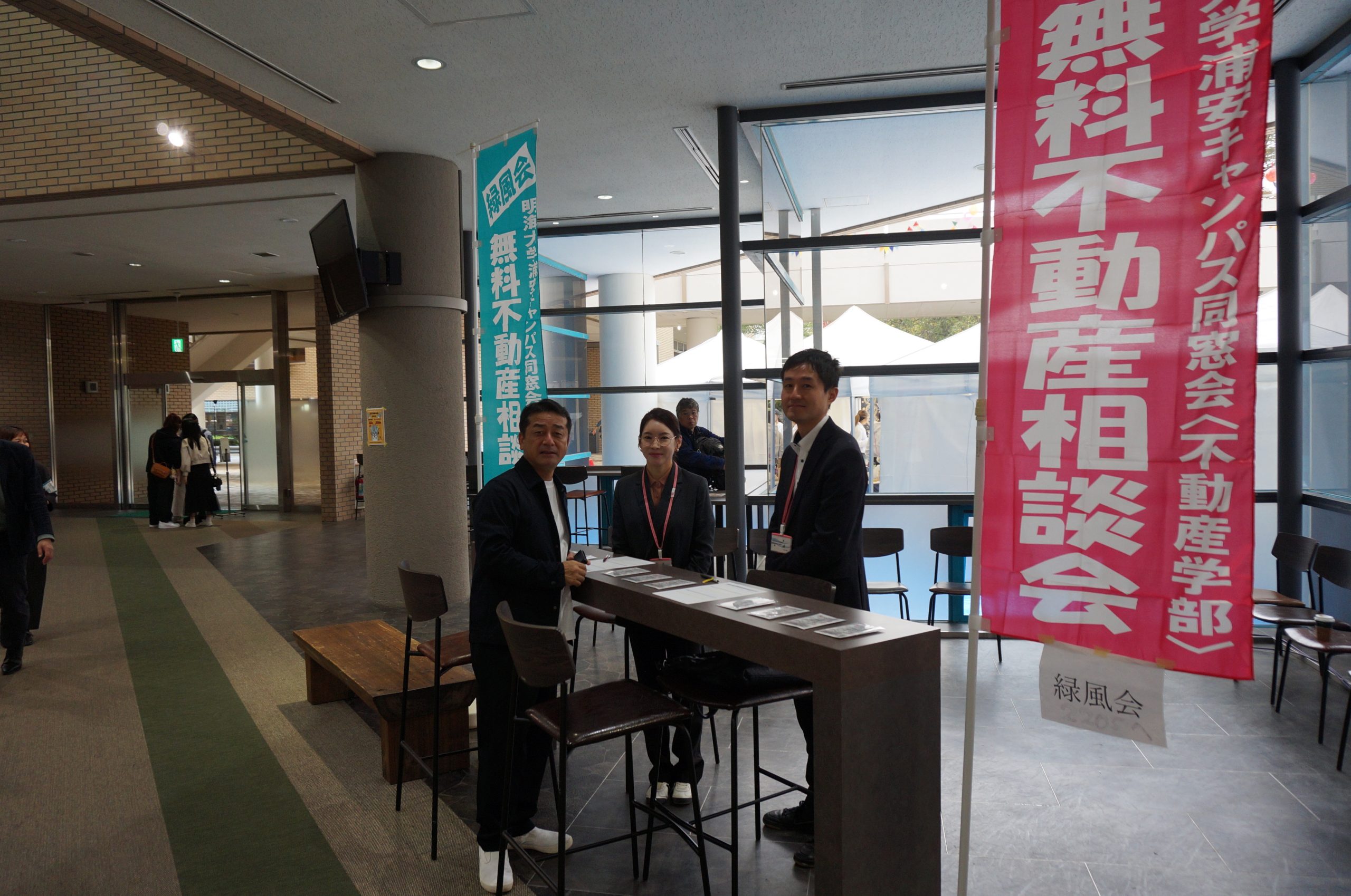 多くのお客様が、不動産学部の成果発表と明海祭の公演などを参観しました。明日11月3日は、研究報告・活動成果発表に加えて、話題の講演会「桃太郎オフィス(中瀬 桃太郎氏、泰道 征憲氏)10:30~12:00」と様々なイベントが予定されています。未だ、間に合いますので、是非足を運んで明海祭に来てください。