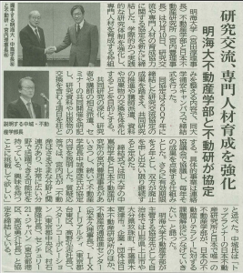 不動産専門紙『週刊住宅』、「明海大学と不動産研究所の協定締結式」について記事掲載