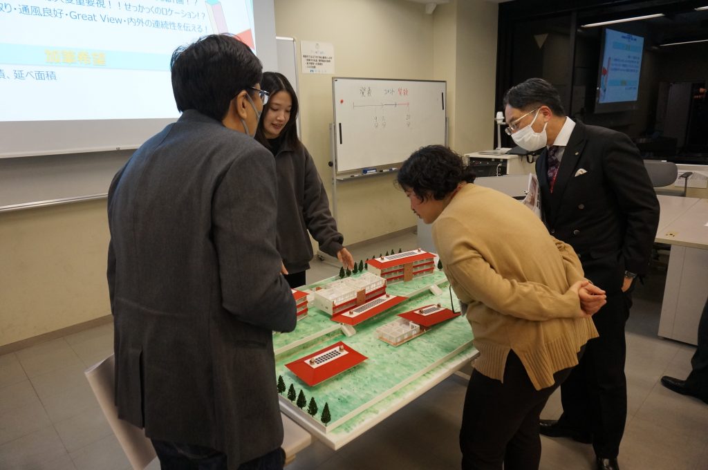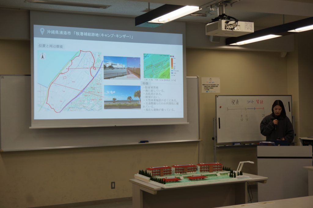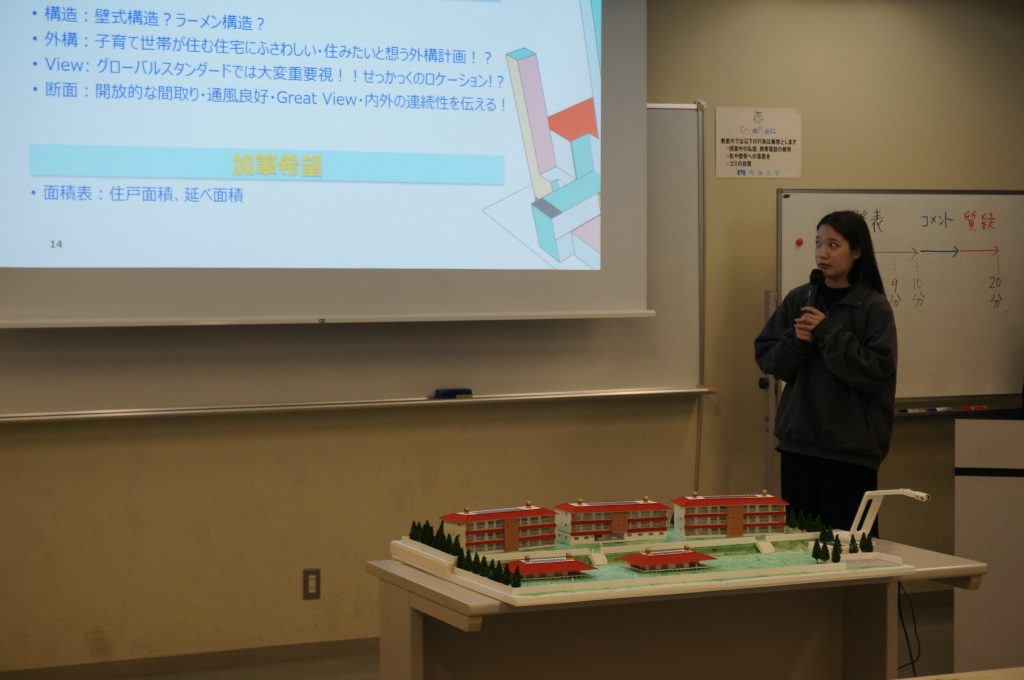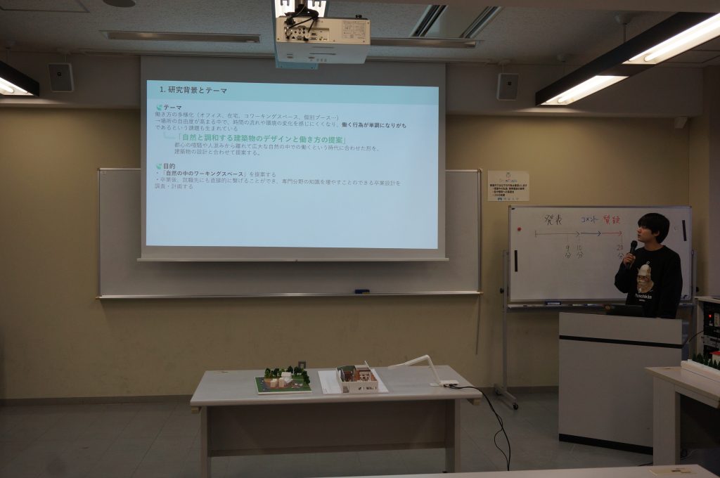 発表会では、卒業設計の3人が発表しました。