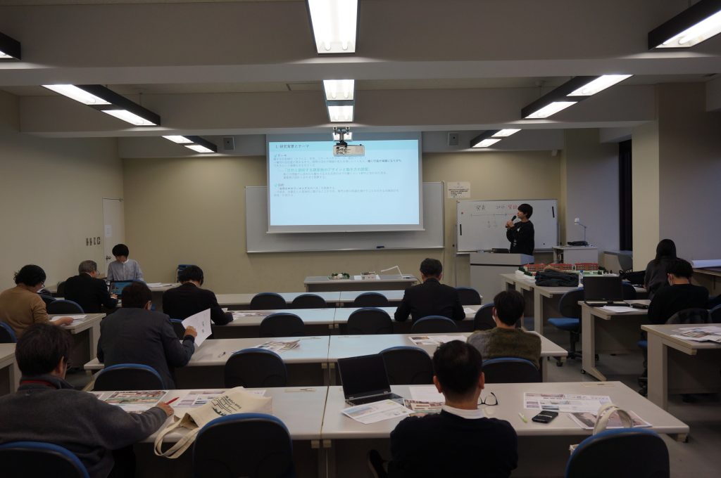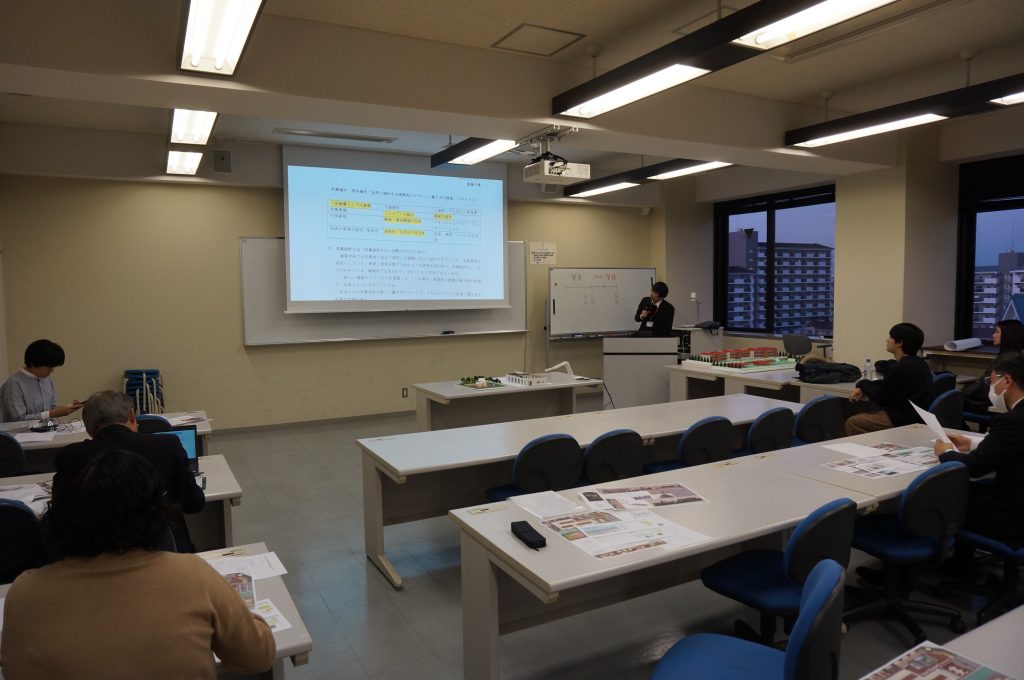 発表会は、学生の卒業設計についての発表が行われ、コメンテータ先生のコメント及び質問の順で実施されました。