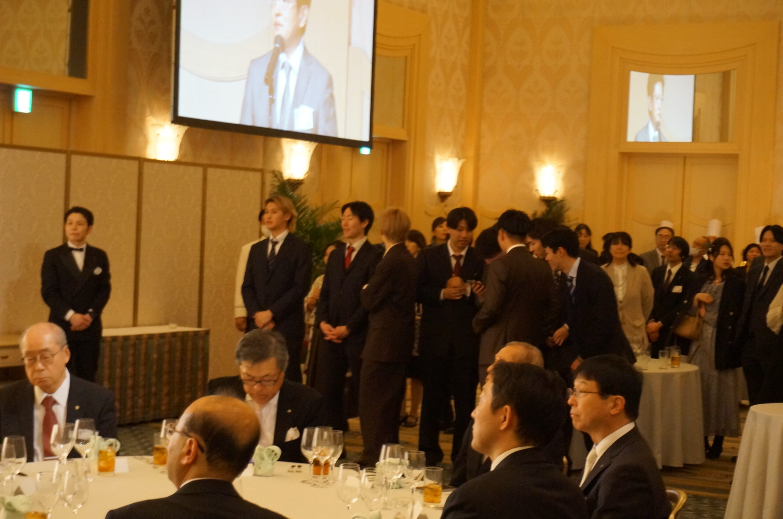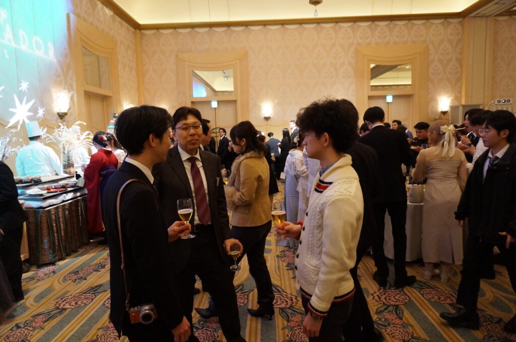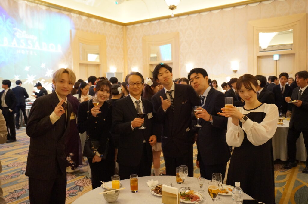2026年3月10日(火)、卒業式・学位記授与式の後、舞浜のディズニーアンバサダーホテルにおいて、2025年度浦安キャンパス卒業パーティーが開催されました。卒業を祝して、豪華な食事を楽しみながら多くの卒業生・教職員で盛り上がりました。明海大学の理事長、学長、同窓会会長、教育後援会会長のご挨拶に加えて、ダンスサークルRABBITはパフォーマンスを披露し、ディズニーキャラクターの出番もありました。当日の卒業パーティーは、大学生活を締め括る華やかで楽しいパーティーとなりました。