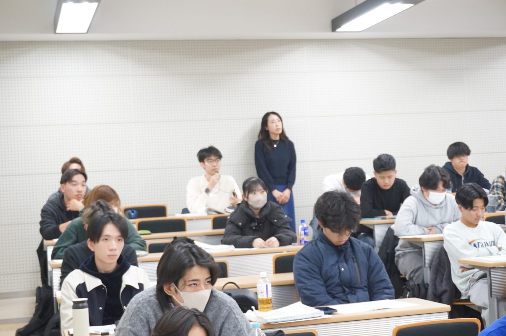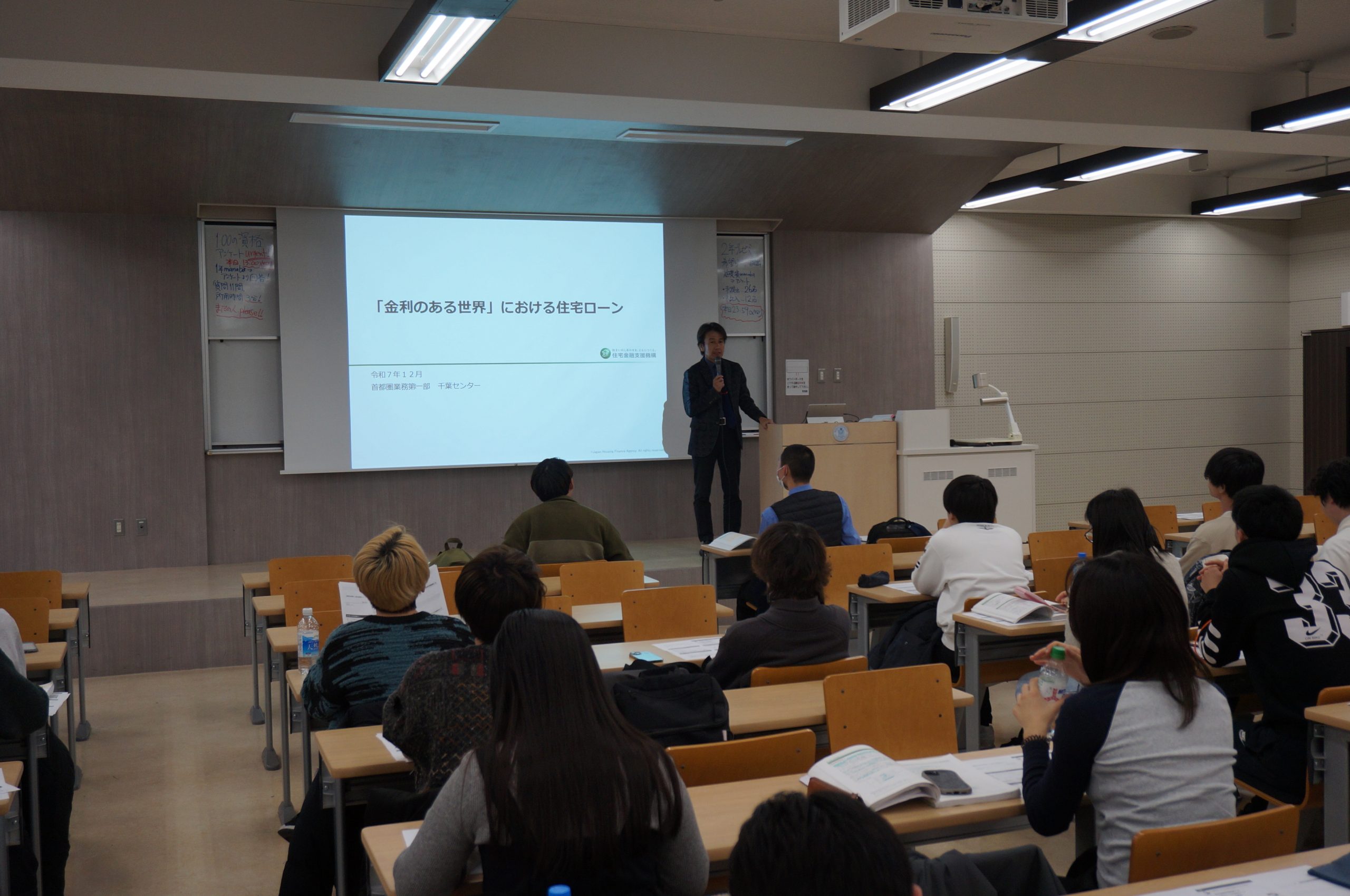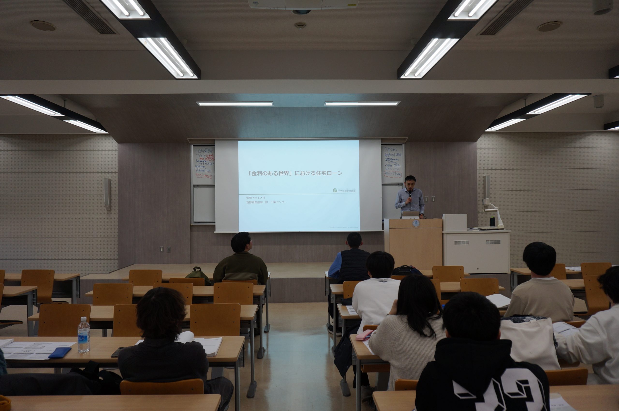 2025年12月17日(水)、1年生学環科目「土地と建物の金融(担当:藤木亮介先生、上地聡子先生、雨夜真規子先生、金東煥先生)」では、外部講師による講演がありました。