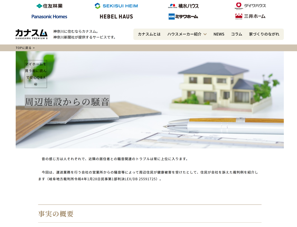 【コラム】マイホームを買う前に読んで安心Q&A㊵「周辺施設からの騒音」はこちら