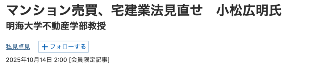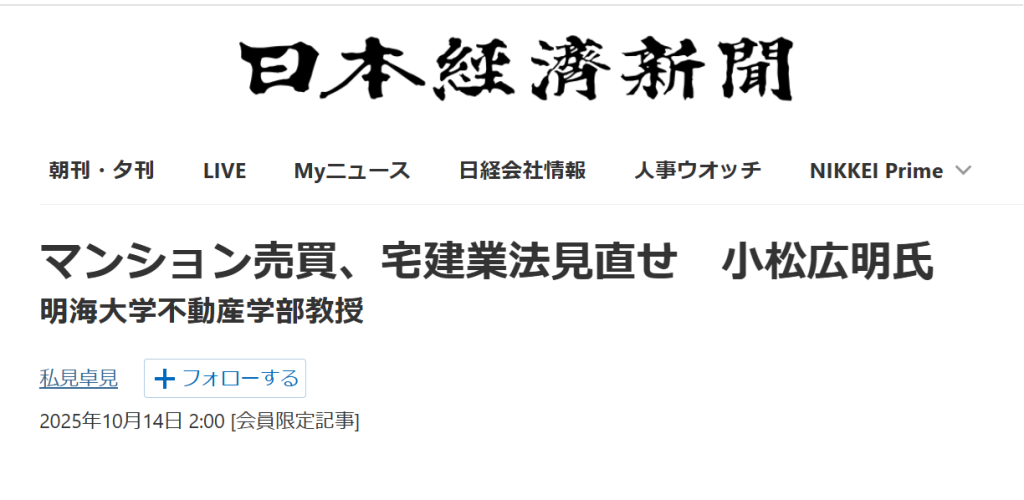 4. 日本経済新聞「私見卓見」に不動産学部の小松広明教授の記事が掲載されました!