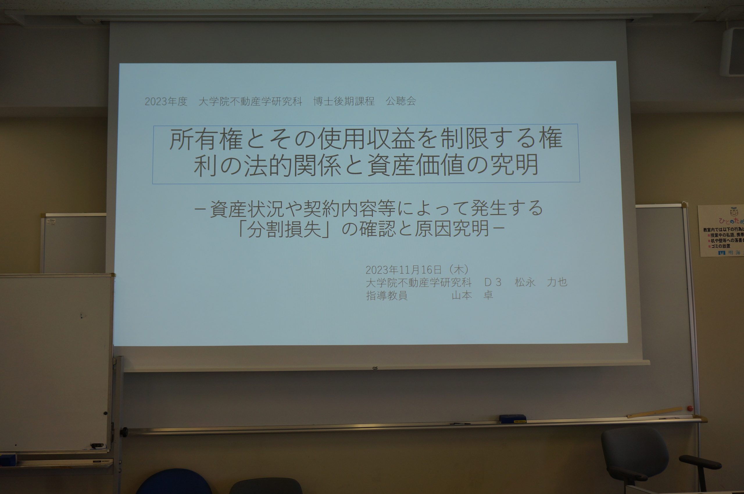 2023年11月16日(木)11:00~12:10、博士後期課程(D3)公聴会を開催しました
