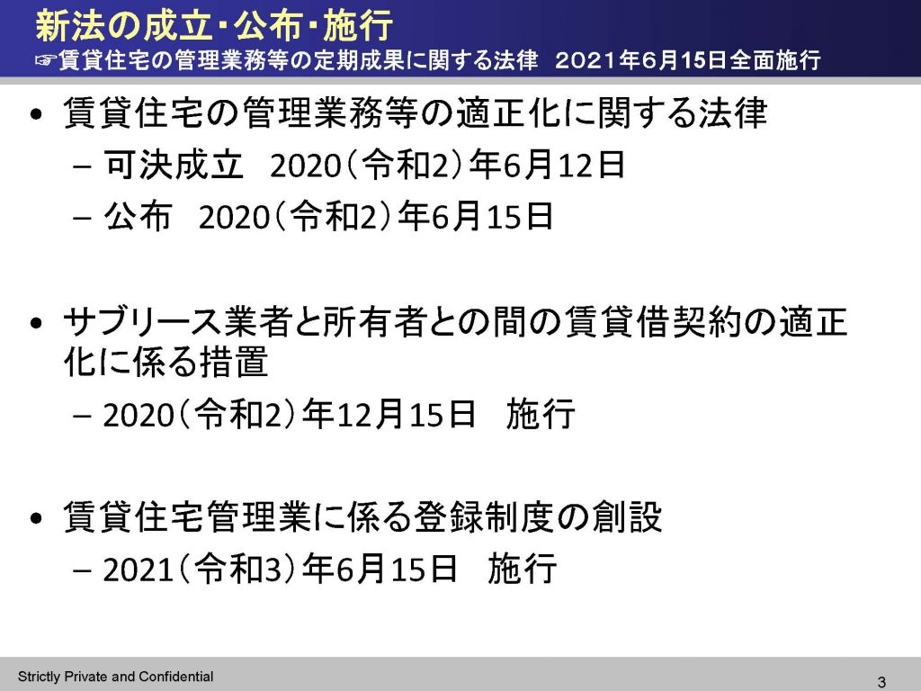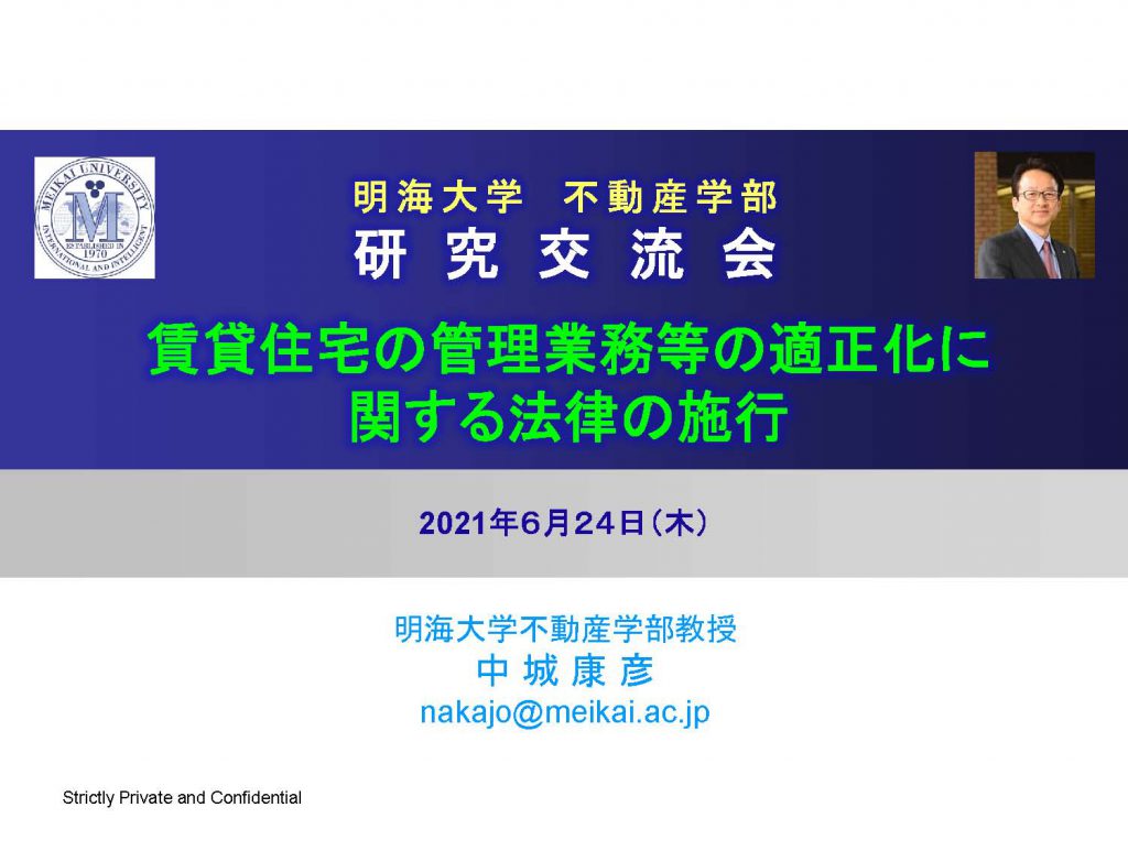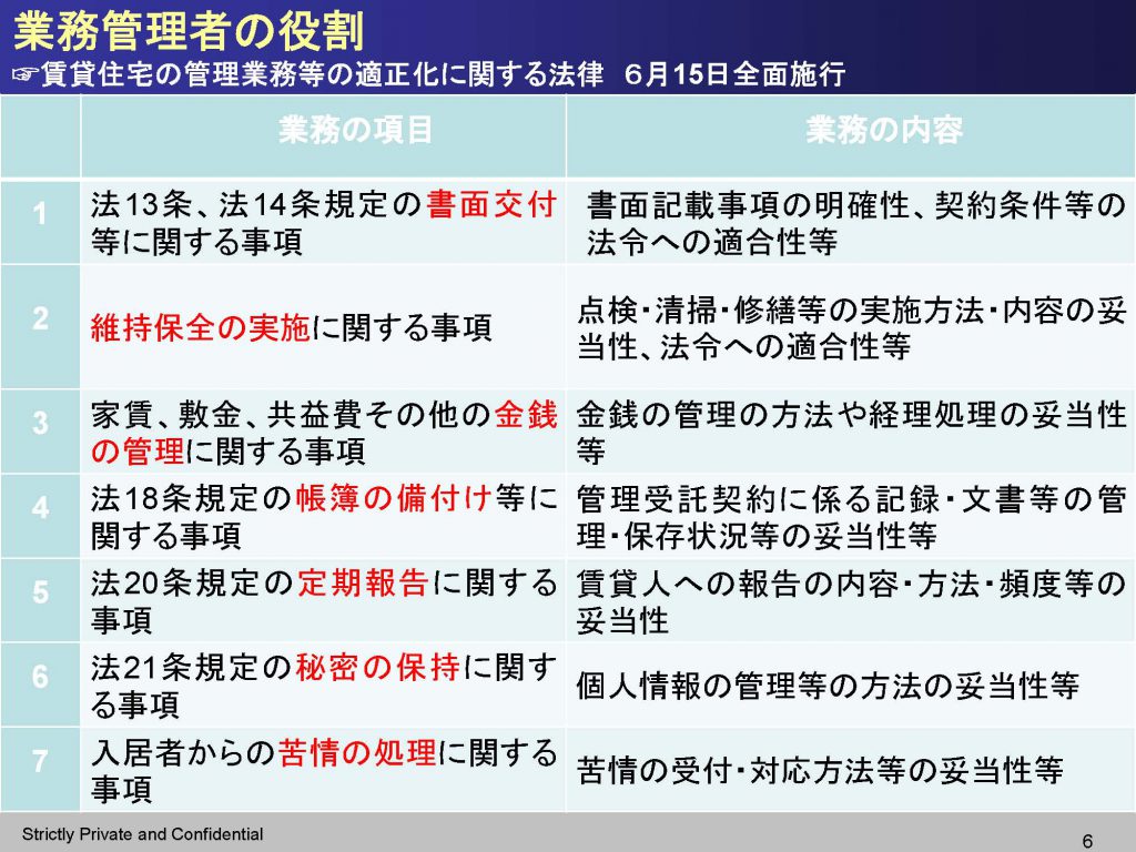 初回となる今回は6月15日全面施行になりました、「賃貸住宅の管理業務等の適正化に関する法律」について (担当:中城先生)。