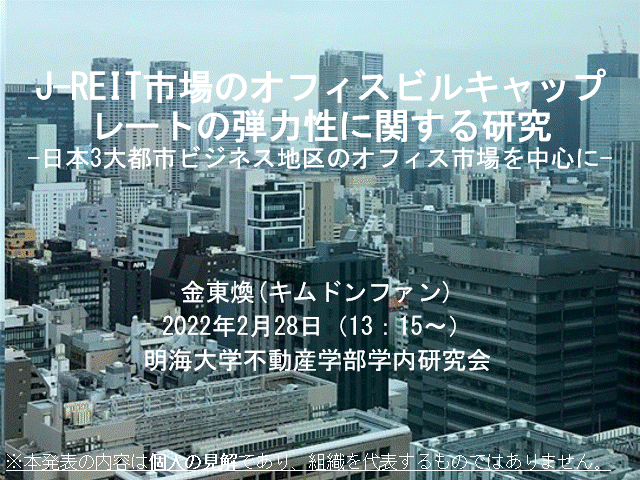 研究交流会PPT資料(「J-REIT市場のオフィスビルキャップレートの弾力性に関する研究:日本3大都市ビジネス地区のオフィス市場を中心に」)