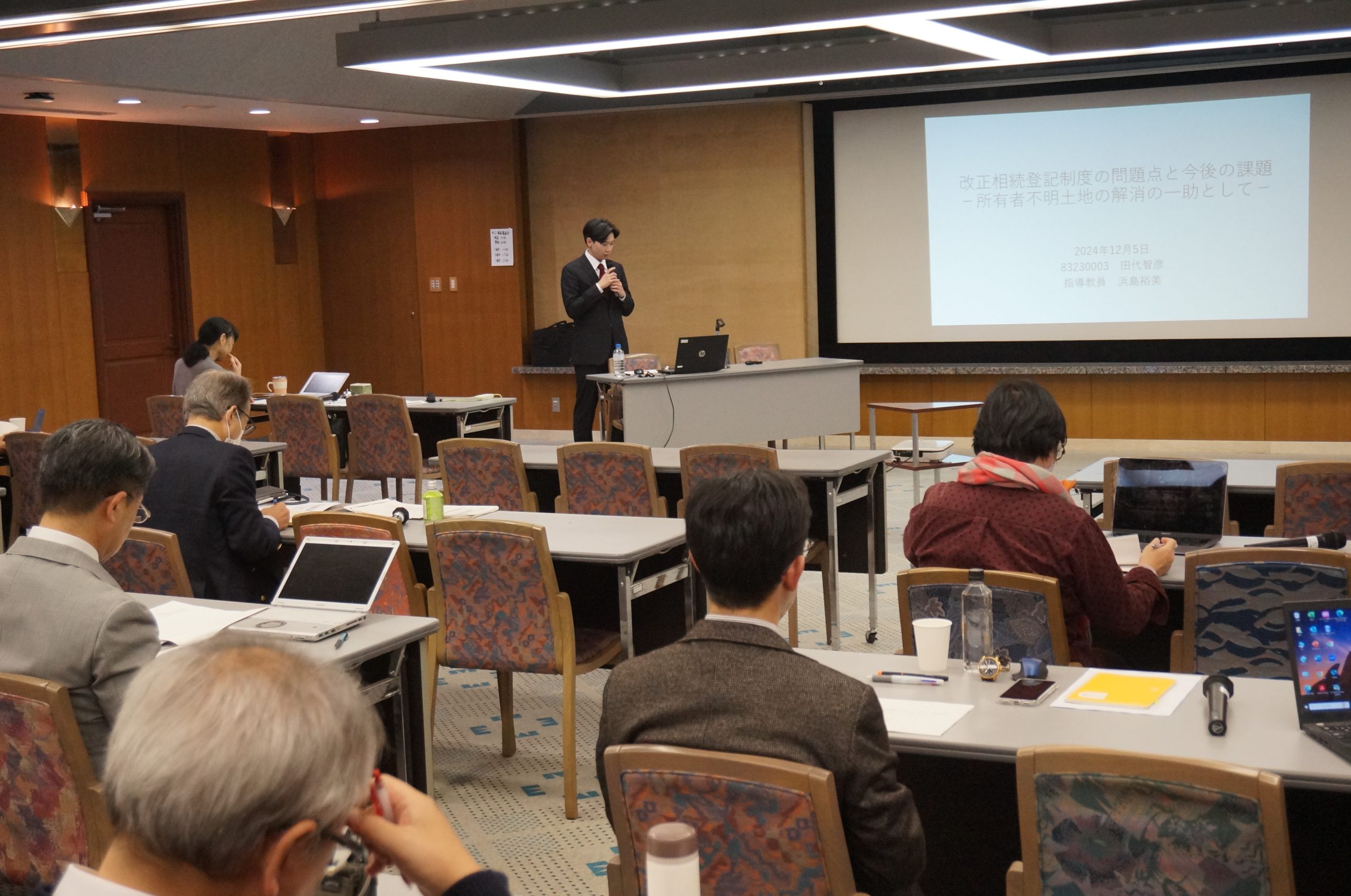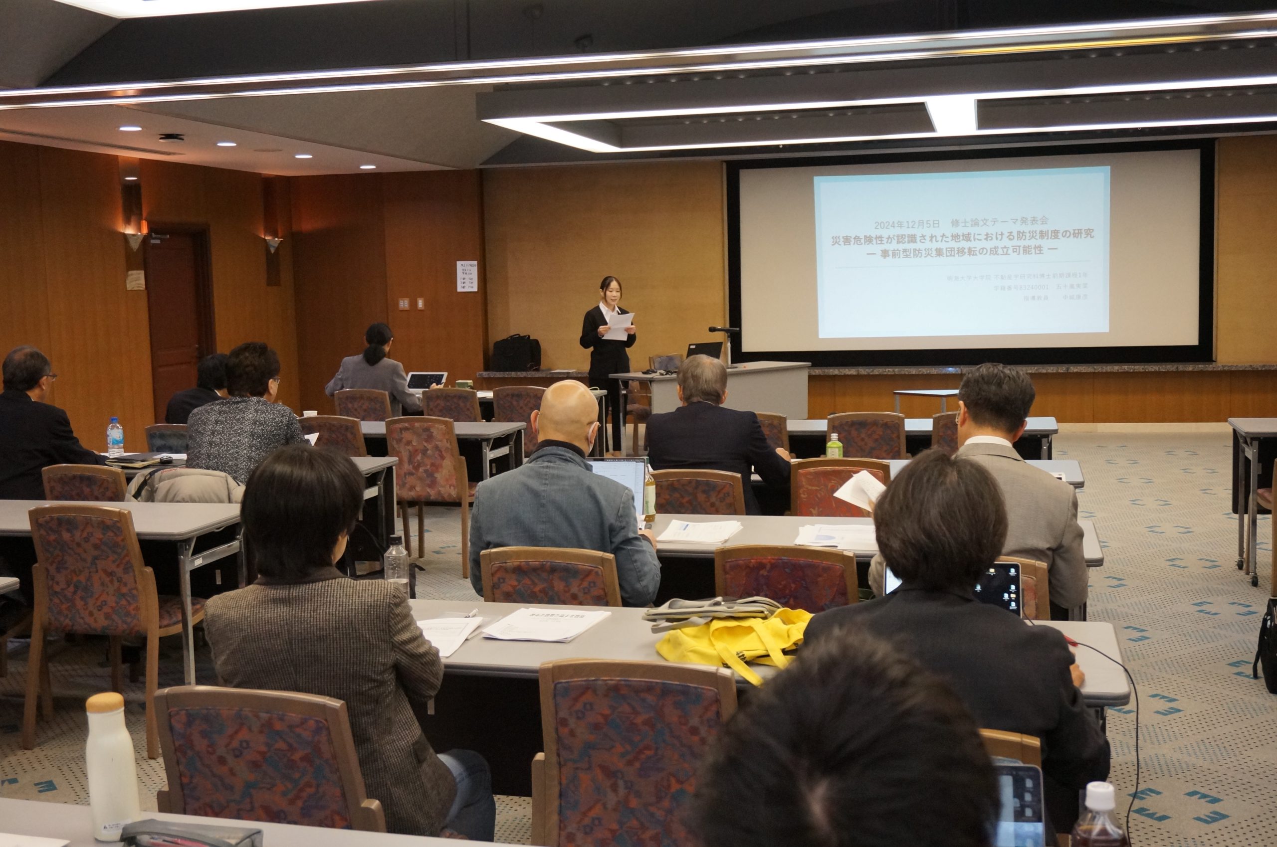 2024年12月5日(木)博士前期課程1年生(M1)のテーマ発表会と博士前期課程2年(M2)の事前審査会大学院を開催しました。博士前期課程1年生のテーマ発表会および博士前期課程2年の事前審査会では、学生の研究論文について発表報告が実施され、先生方々との多くの質疑応答が行われました。これから、M1学生はテーマに基づいて修士論文作成とM2学生は修士論文提出に向けて様々な論文修正など課題解決が必要になります。引き続き頑張ってください。当日のテーマ発表会と事前審査会の様子をお伝えします。お忙しいところ、ご参加していただいた方々にお礼申し上げます。