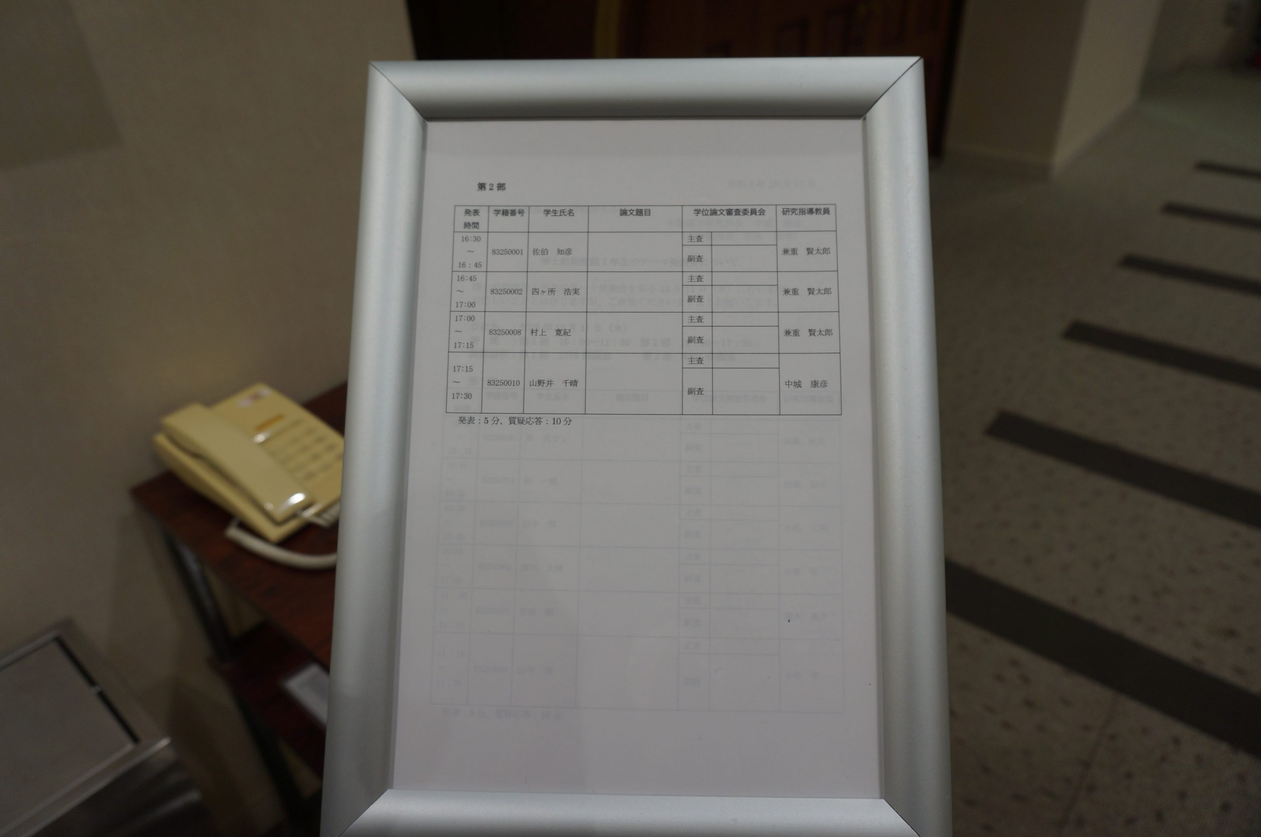 テーマを報告した学生達は、多くの先生から有益なコメントを得ることができました。これからは、修士1年生の修士論文執筆が本格化すると思います。先生達からのコメントを参考にして、より良い修士論文を執筆ができることを期待します。